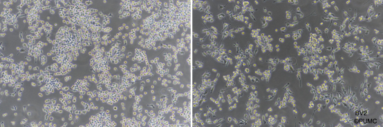 ? :BV2細(xì)胞對(duì)培養(yǎng)條件較敏感,需要使用品質(zhì)好一些的血清,日常培養(yǎng)需注意培養(yǎng)基顏色變化,培養(yǎng)液明顯變黃則看情況及時(shí)換液,培養(yǎng)液偏紫需要檢查CO2供應(yīng)情況。