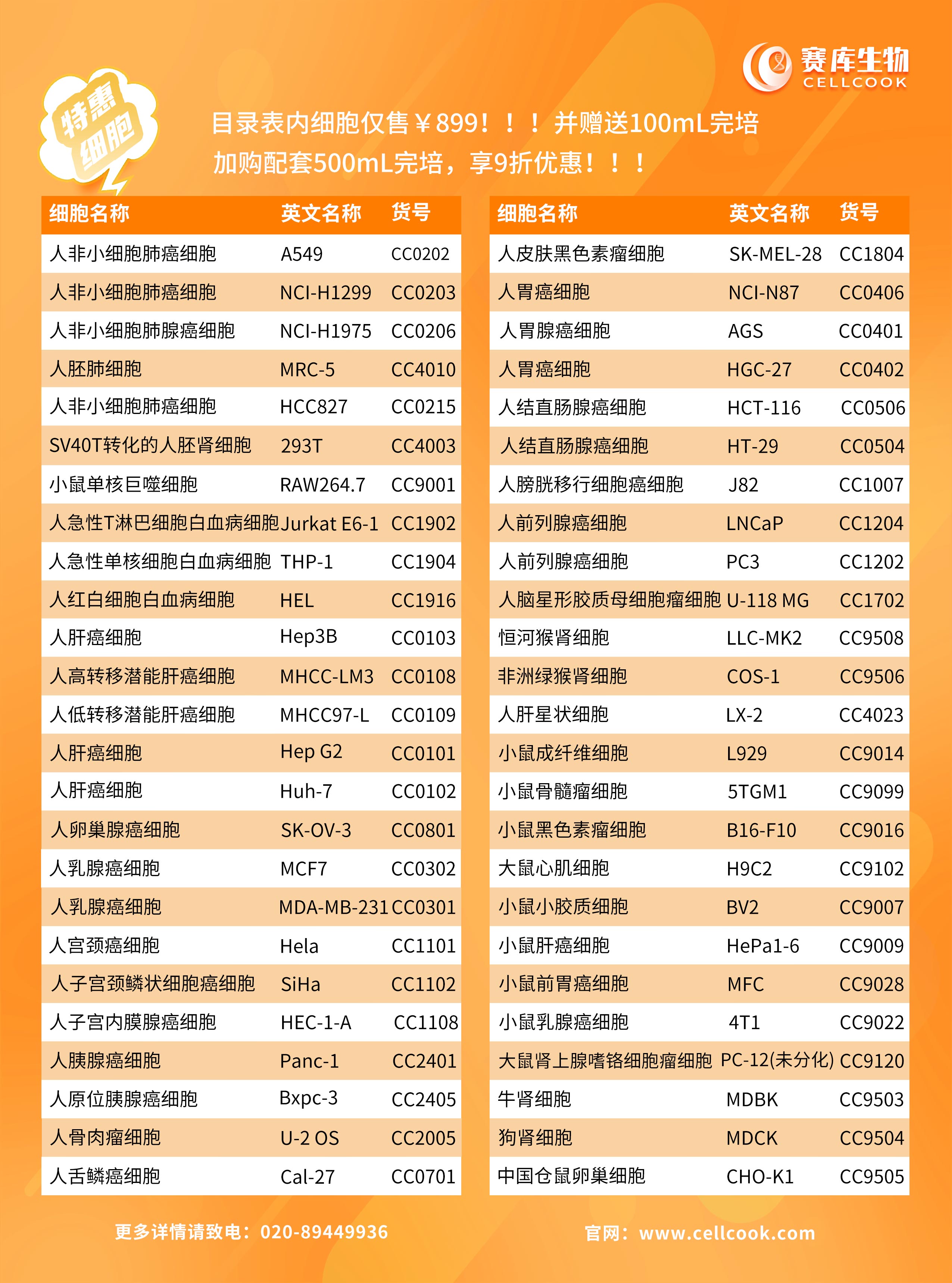 1、目錄表內(nèi)細(xì)胞僅售¥899,贈(zèng)100mL完培