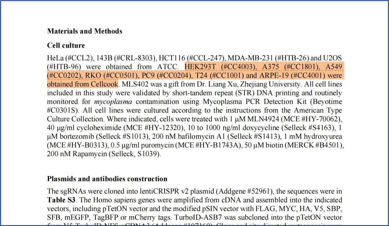 本論文實驗中使用了賽庫生物CELLCOOK提供的HEK293T (CC4003), A375 (CC1801), A549 (CC0202), RKO (CC0501), PC9 (CC0204), T24 (CC1001) 和ARPE-19 (CC4001)等7種細胞系。