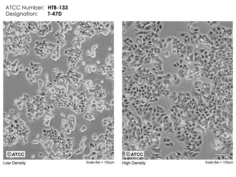 T-47由I Keydar分離自一位54歲乳房侵入性導管癌的女性患者的胸腔積液;分化的上皮亞株(T-47D)有細胞質連接和17β雌二醇及其他類固醇激素、降鈣素的受體;表達WNT7B癌基因。