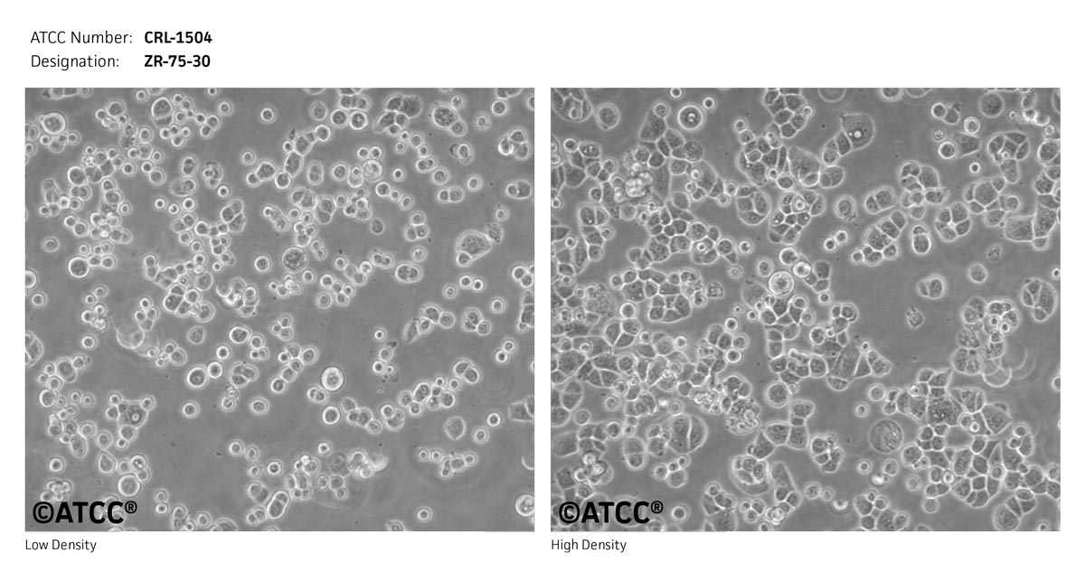 ZR-75-30源自一位47歲女性黑人更年期侵入性導(dǎo)管癌患者的腹水。 細(xì)胞定性為人,非-HeLa,惡性乳房上皮癌起始。