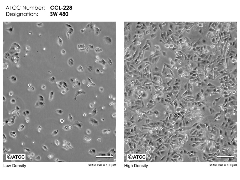 SW480源自一位51歲白人男性患者的原位直腸腺癌,而SW620源自同一病人一年后的淋巴結(jié)轉(zhuǎn)移灶。該細(xì)胞CSAp和直腸抗原3陰性;角蛋白陽性;p53基因第273位密碼子的G→A突變引起Arg→His替代,309位密碼子的C→T突變導(dǎo)致Pro→Ser替代;細(xì)胞p53蛋白表達(dá)水平升高;癌基因c-myc、K-ras、H-ras、N-ras、myb、sis 和fos的表達(dá)呈陽性;未檢測(cè)到癌基因N-myc的表達(dá);不表達(dá)Matrilysin(一種與腫瘤侵襲相關(guān)的金屬蛋白酶)。有報(bào)道稱該細(xì)胞表達(dá)GM-CSF。