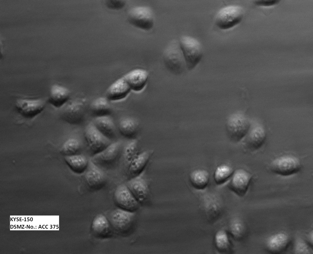 從一位49歲,已經(jīng)接受過放療的日本女性患者的頸部食管中分離建立的低分化食管鱗癌。癌組織已侵襲至相鄰組織。文獻(xiàn)報(bào)道細(xì)胞攜帶有增多的癌基因c-erb-B (8倍)和cyclin D1 (4倍) 并且細(xì)胞在裸鼠中能夠成瘤。
