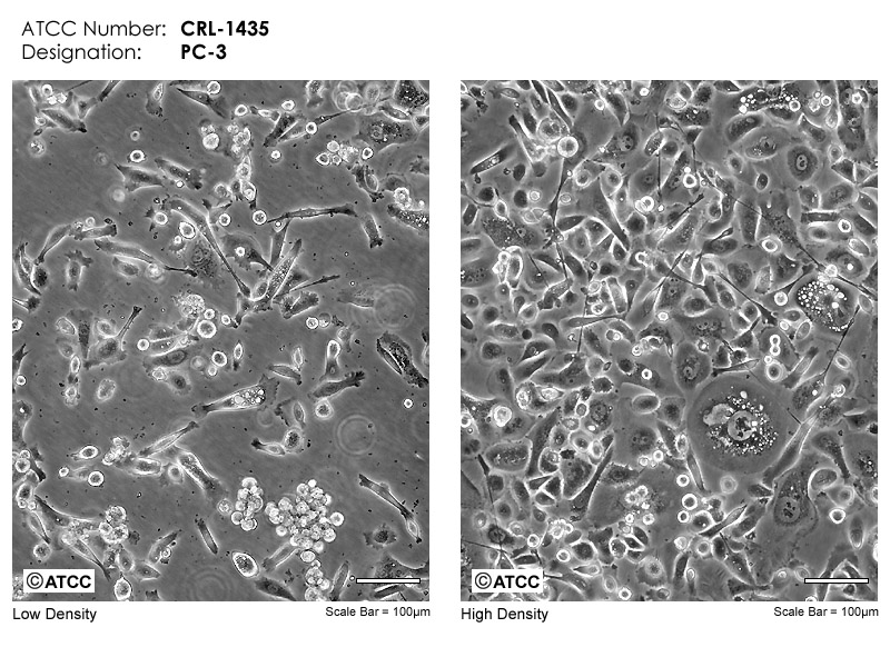 PC-3源于一位62歲白人男性IV級(jí)前列腺腺癌患者的骨轉(zhuǎn)移灶;有低水平的酸性磷酸酶活性和5-α-睪酮還原酶活性。