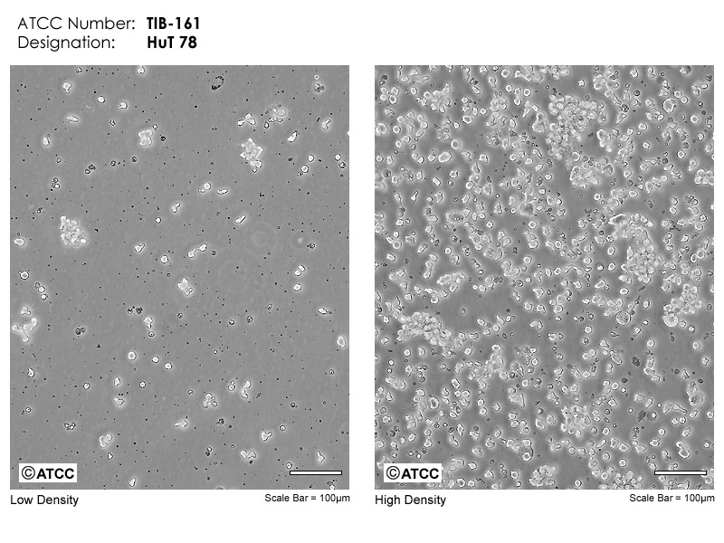 HUT 78由A.F. Gazdar于1981年從一名53歲患有塞扎萊綜合癥的白人男性外周血中分離并建立。該細胞具有成熟T細胞的誘導(dǎo)-輔助特性。該細胞的表面能洗提出具有生物活性的IL-2。