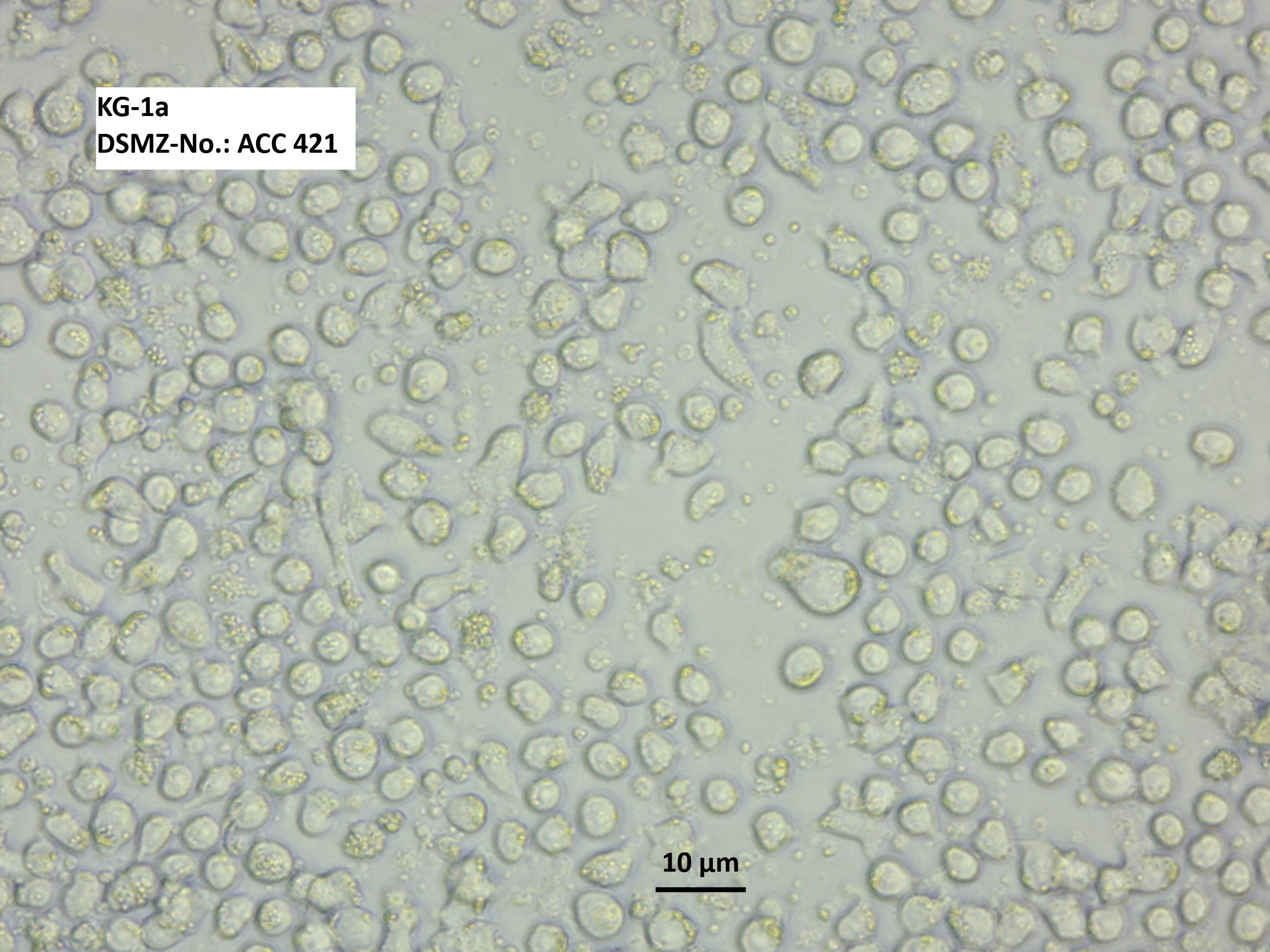 KG1細(xì)胞系由H.P.Koeffler和D.W.Golde建立。骨髓抽自一個59歲的患有紅白血病而后又發(fā)展成急性骨髓原性白血病的男性白人。KG1細(xì)胞在形態(tài)上類似急性髓原白血病,表現(xiàn)為明顯的多形化,骨髓母細(xì)胞和骨髓細(xì)胞占優(yōu)勢。少量細(xì)胞是成熟的粒細(xì)胞,也有微量的巨噬細(xì)胞和嗜曙紅細(xì)胞。培養(yǎng)35代后表現(xiàn)出與母細(xì)胞系不同的形態(tài)特征。亞型KG-1a由未分化的早幼粒細(xì)胞組成。相比KG-1細(xì)胞,KG-1a在軟瓊脂培養(yǎng)中對集落刺激因子沒反應(yīng),也不表達(dá)LA樣抗原。同時對佛波酯誘導(dǎo)的巨噬細(xì)胞分化有抵抗作用,佛波酯也不會引起細(xì)胞