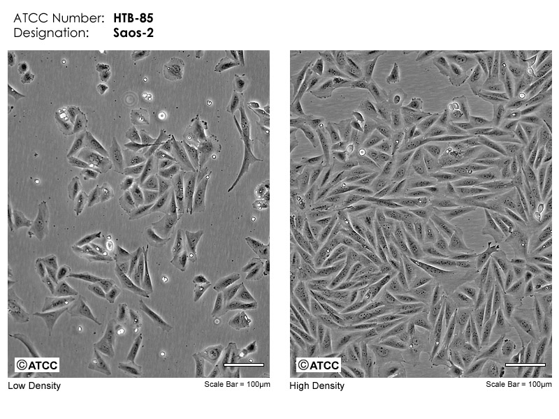 該細(xì)胞是Fogh J和Trempe G分離和鑒定的眾多人類腫瘤細(xì)胞系中的一種;該細(xì)胞來自一位11歲的白人女性的骨肉瘤組織。患者經(jīng)過放療以及氨甲喋呤、阿霉素、長(zhǎng)春新堿、環(huán)磷酰胺和aramycin-C等多種藥物治療。該細(xì)胞在免疫抑制小鼠中不致瘤,細(xì)胞表達(dá)表皮生長(zhǎng)因子EGF受體、轉(zhuǎn)化生長(zhǎng)因子β(1型和2型)受體。