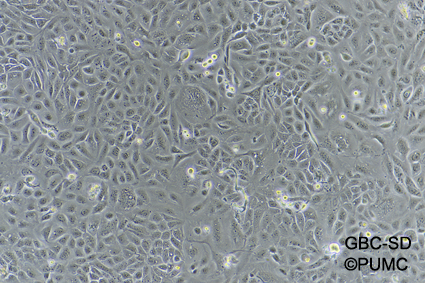 GBC-SD細(xì)胞株是王展明等2000年從一位61歲的男性低分化膽囊癌患者中建立的。細(xì)胞的形狀有多邊形、紡錘形和正方形。分泌CEA和CA19-9。倍增時(shí)間大約為21.4小時(shí)。可移植到裸鼠。生成的腫瘤與原發(fā)腫瘤相似。