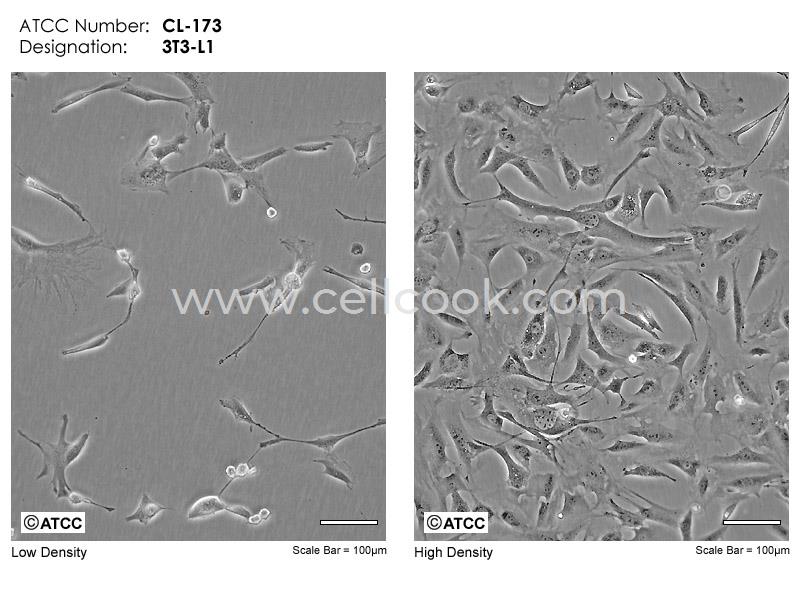 3T3-L1是從3T3細胞(Swiss albino)中經克隆分離得到的連續(xù)傳代的亞系。該細胞從快速分裂到匯合和接觸性抑制狀態(tài)經歷了前脂肪細胞到脂肪樣細胞的轉變。該細胞鼠痘病毒陰性;可產生甘油三酯,高濃度血清可增強細胞內脂肪堆積。
